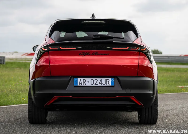 The Junior wears its Alfa badge with pride. At just over 13 feet long (4.17 meters), this subcompact electric crossover balances aggressive styling with friendly proportions. The triangular Scudetto grille and narrow LED headlamps give it a sharp, unmistakably Alfa front end. From the rear, its slim taillights and clean lines create a sophisticated yet sporty look.