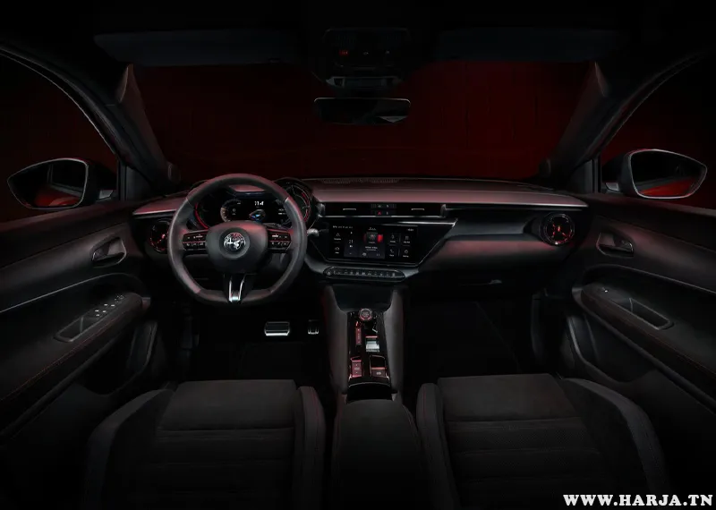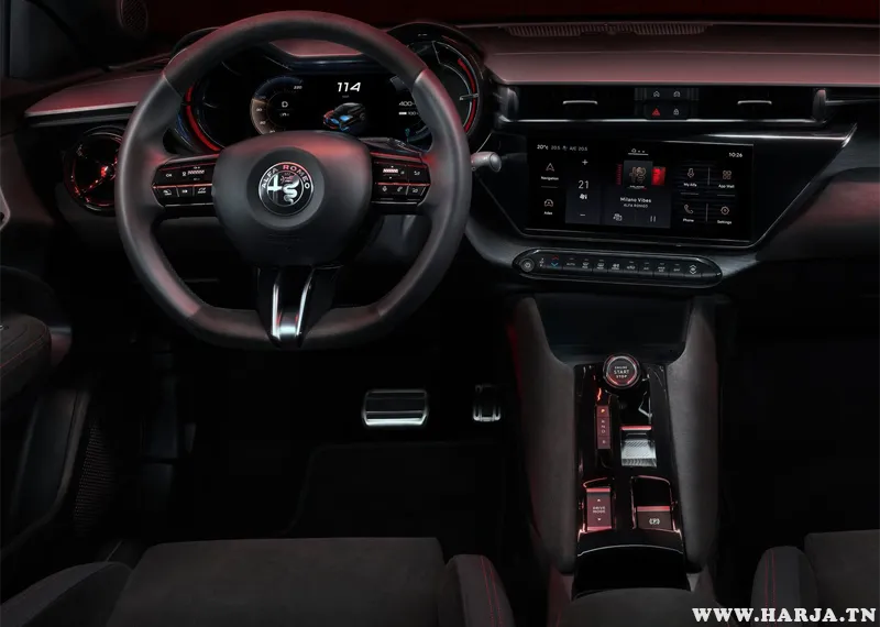 Step inside the Junior and you’ll find a cabin that blends Alfa heritage with digital age sensibilities. A 10.25-inch digital instrument cluster sits behind a retro-inspired twin-pod binnacle, giving drivers a mix of nostalgia and modern tech. Another 10.25-inch screen handles infotainment duties with wireless Apple CarPlay and Android Auto, as well as Alfa Connect services.