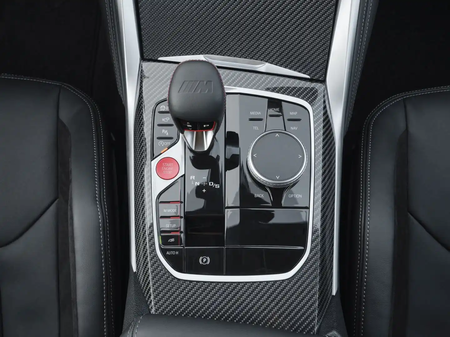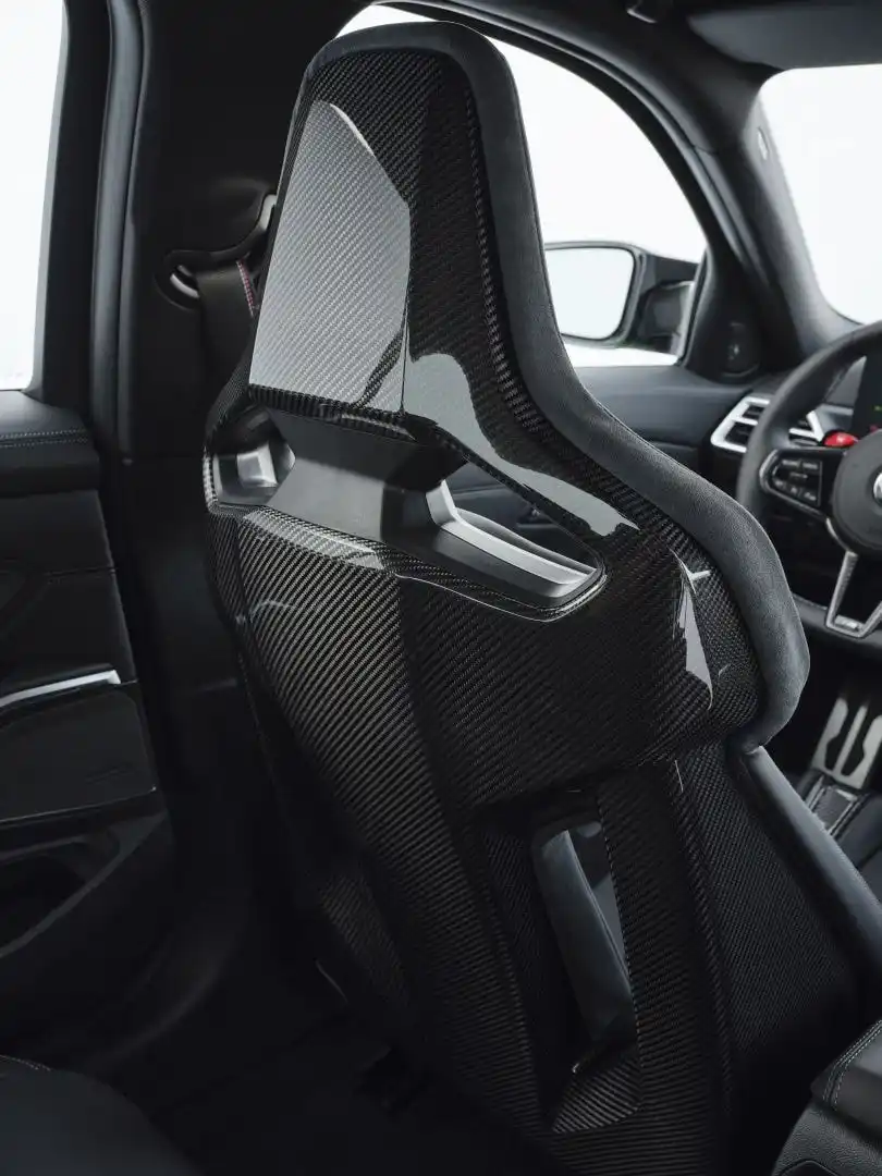 Front Seats: Known for their high-performance engineering, BMW M models also deliver premium interiors that rival—or surpass—the top-tier 3-Series trims. The M3 adds a sportier flair with carbon fiber and microsuede accents throughout the cabin. Drivers enjoy a large curved digital gauge cluster that shifts to “M View” in sportier driving modes, activated by the bold red buttons on the M3’s thick steering wheel.