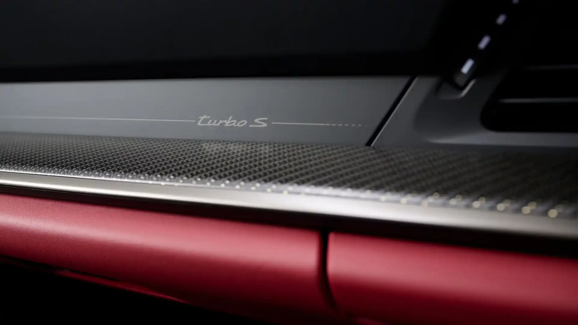 The Turbonite finish appears on the badging, wheel center locks, and “Turbo S” lettering, as well as on the slats of the engine grille and window surrounds, offering a subtle nod for enthusiasts. Inside, the treatment continues on details like the instrument cluster and Sport Chrono stopwatch, tying the theme together.