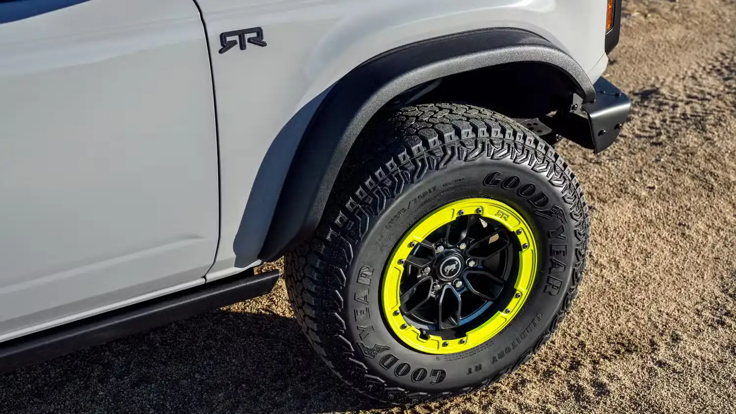 Every Bronco RTR is powered by Ford’s 2.3-liter turbocharged inline-four, producing a healthy 300 horsepower and 325 pound-feet of torque. Buyers can choose from several tire and suspension setups. The standard Bronco RTR rides on 33-inch Goodyear Rugged Terrain tires, now paired— for the first time—with a high-clearance suspension.