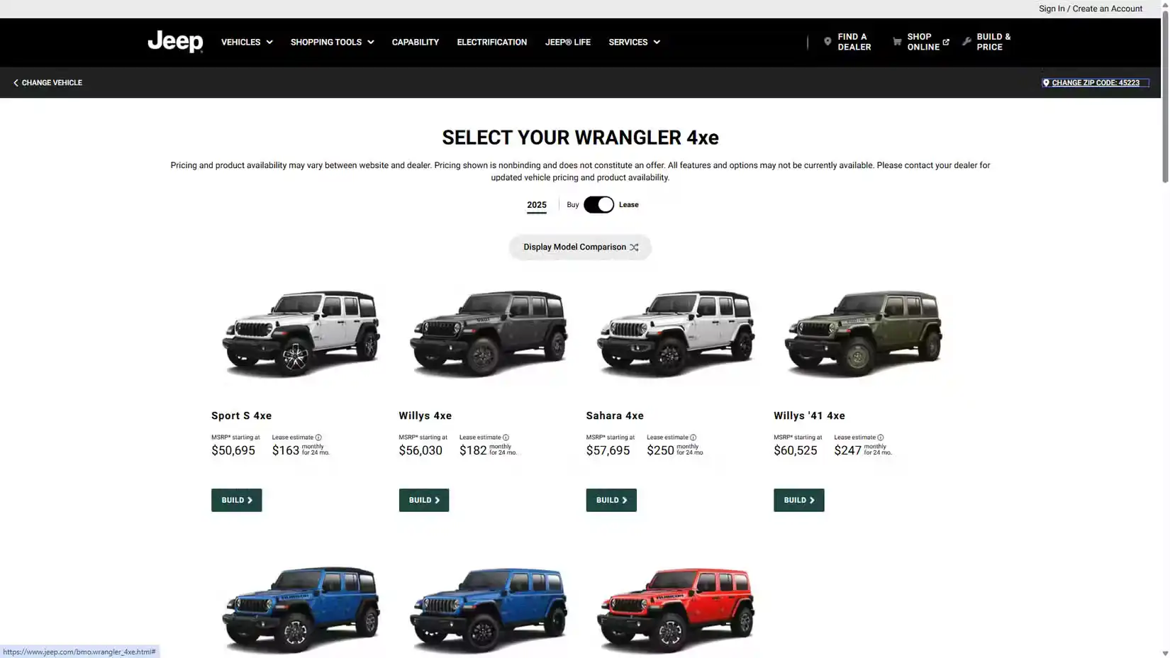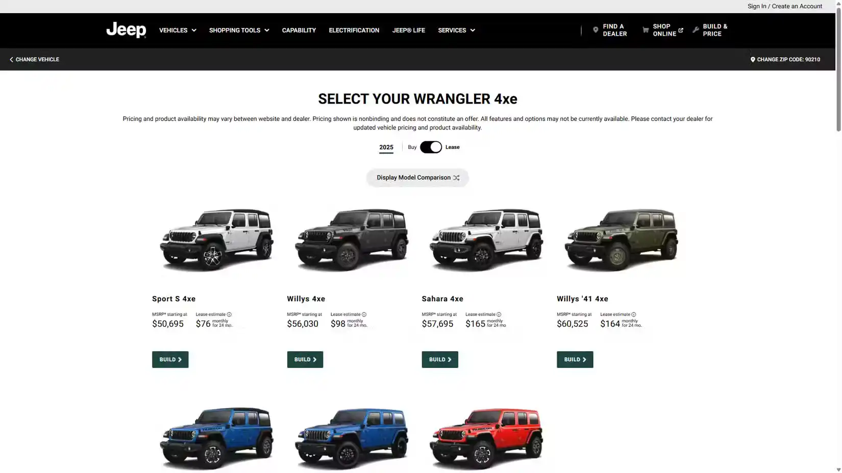 The Jeep Wrangler legendary off-road prowess and iconic open-air design may be more attainable than ever. In select areas, the 2025 Jeep Wrangler 4xe plug-in hybrid can be leased for an astonishingly low $76 per month.