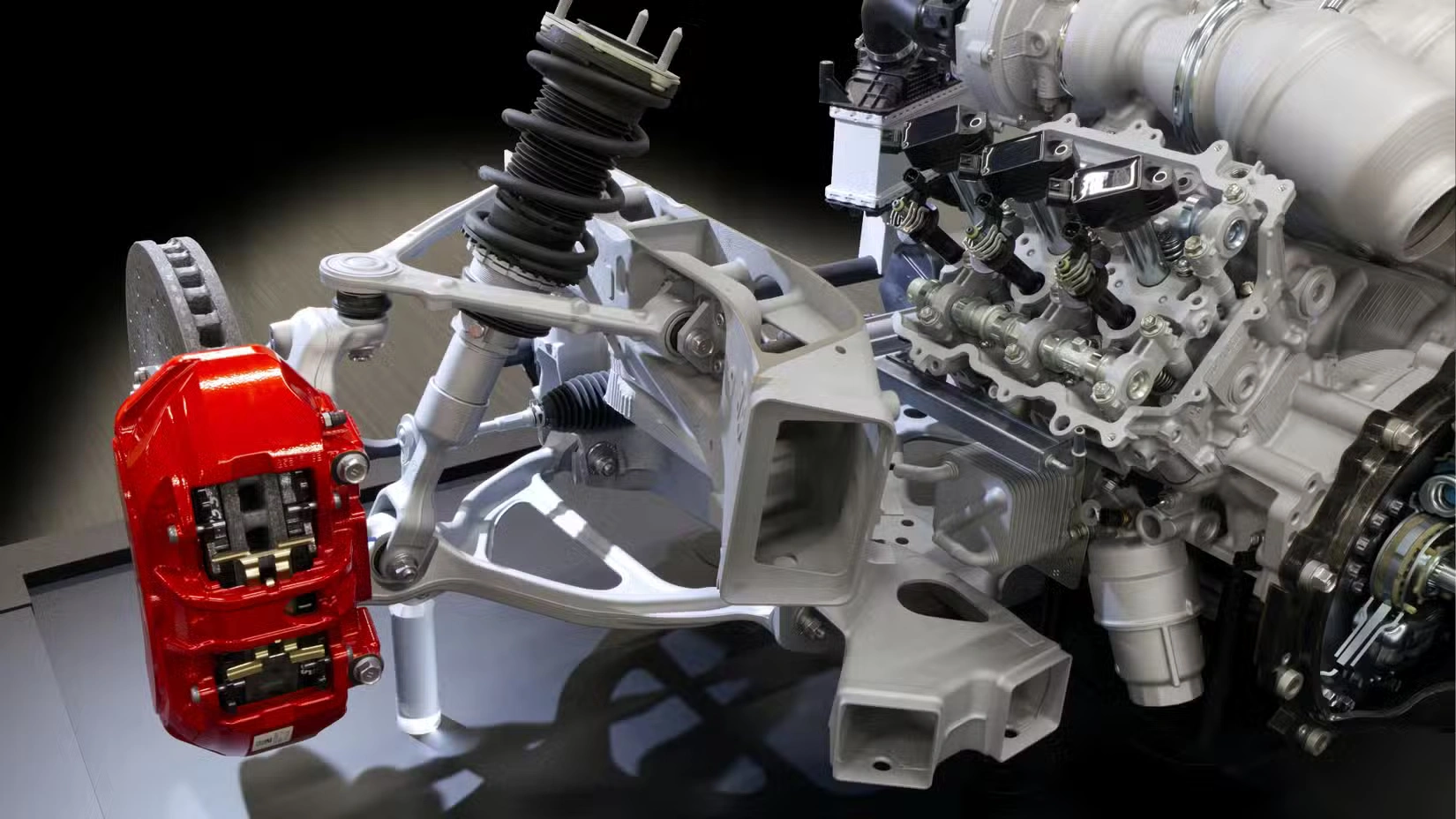 The Toyota GR GT rides on double-wishbone suspension at both the front and rear, using aluminum control arms and a design focused on linear response and precise control. Toyota says many of the core components are shared with the GT3 race car, hinting at serious durability and track-worthy handling.